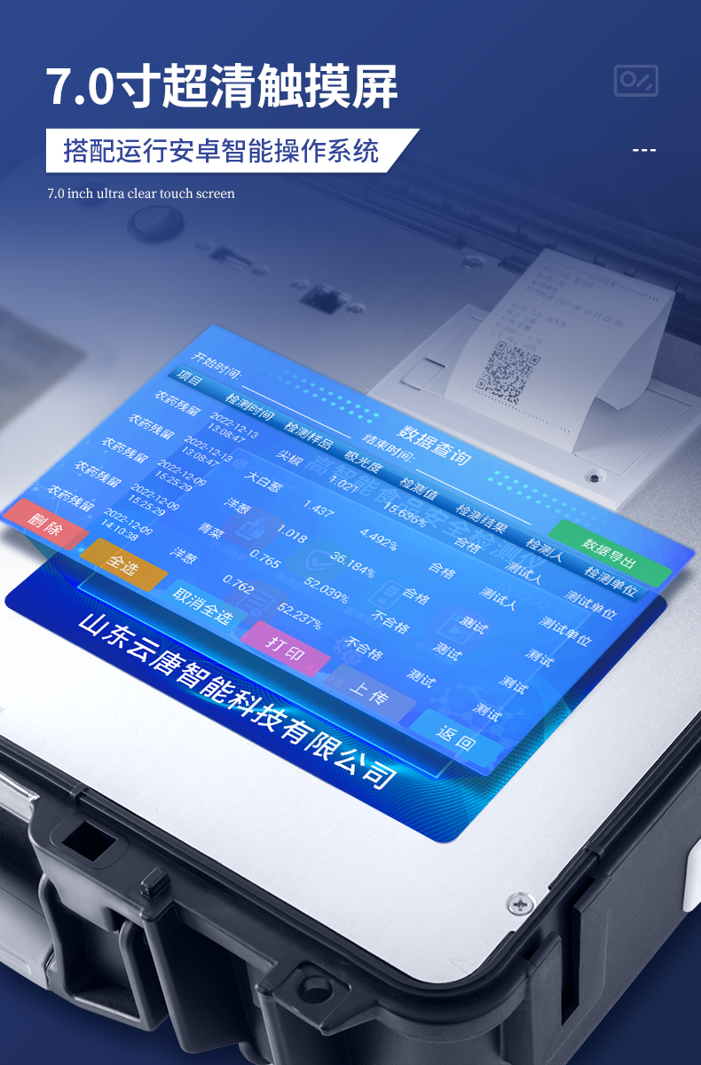5、一體化便攜式快檢設備,滿足現場及流動檢測使用需求,能夠在同一軟件下實現所有檢測項目的檢測,并可通過同一窗口直觀顯示檢測結果。