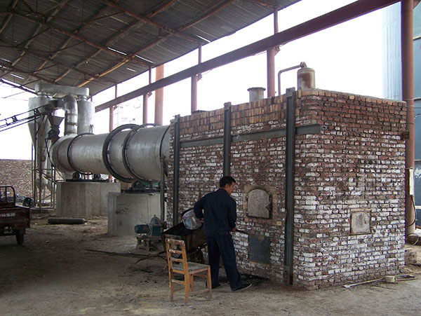 直熱式回轉(zhuǎn)滾筒干燥機(jī)主要由熱源、上料機(jī)、進(jìn)料機(jī)、回轉(zhuǎn)滾筒、出料機(jī)、引風(fēng)機(jī)、卸料器和配電柜構(gòu)成。脫水后的濕物料進(jìn)入干燥機(jī)后,在滾筒內(nèi)均布的抄板的翻動(dòng)下,物料在干燥機(jī)內(nèi)均勻分散與熱空氣充分接觸,加快了干燥傳熱﹑傳質(zhì)。在干燥過(guò)程中,物料在帶有傾斜度的抄板和熱氣質(zhì)的作用下,至干燥機(jī)另一段卸料器排出成品。適合于滑石粉的烘干。