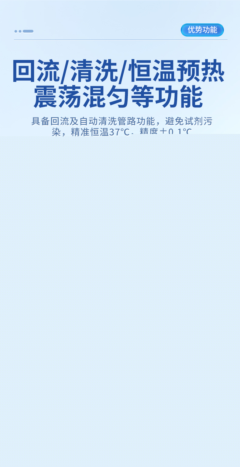 儀器主要包括光源校準、系統設置、樣本信息、結果查詢、項目預設,打印設置等模塊,及灌注,回流、清洗、恒溫預熱,震蕩混勻等功能。