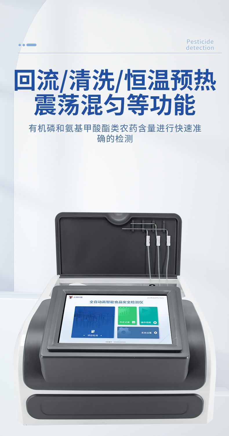 全自動農藥殘留檢測儀是依據國家標準方法(GB/T5009.199-2003),采用酶抑制率比色法對水果、蔬菜等農產品中有機磷和氨基甲酸酯類農藥含量進行快速準確的檢測。該設備廣泛應用于蔬菜批發市場、超市、商場、食藥監等部門的蔬菜和水果中的農藥殘留檢測。