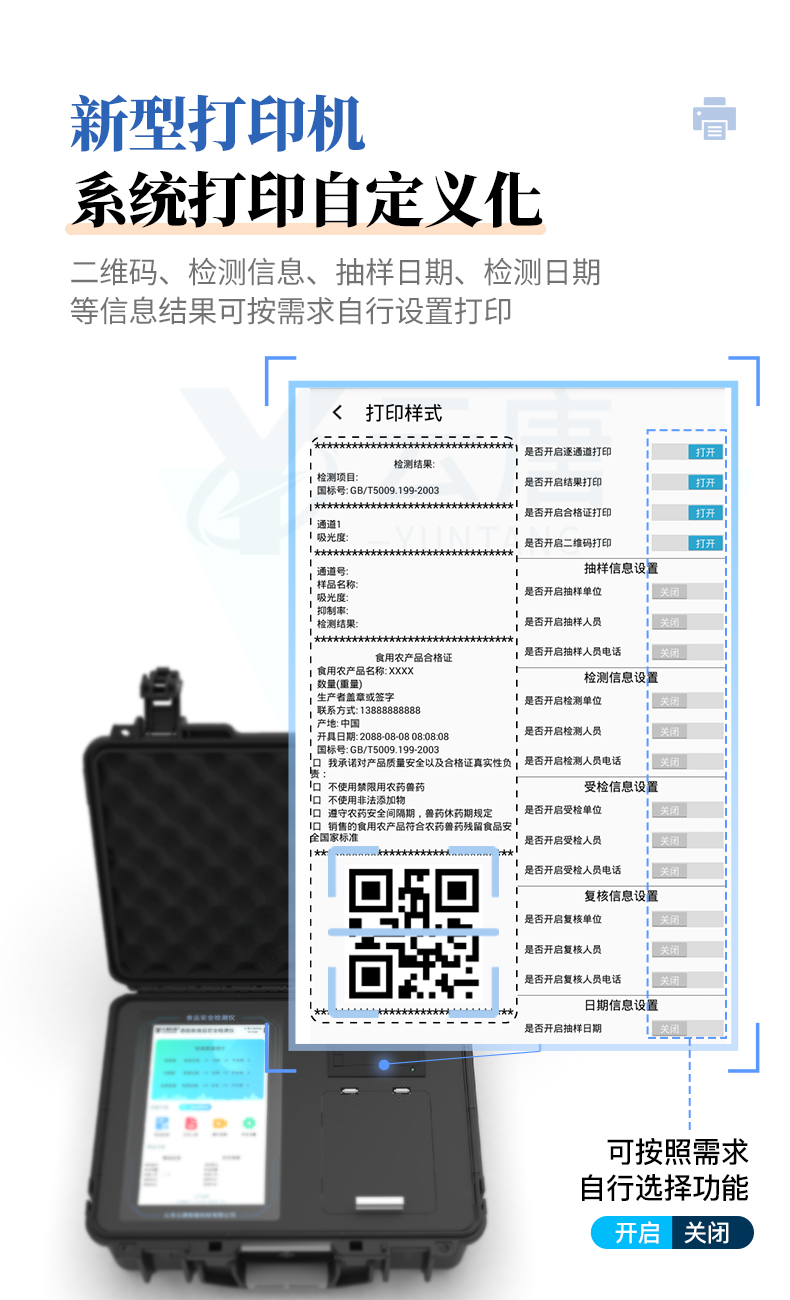 *10、系統打印自定義化,打印格式多樣化,產品合格證(國家標準要求),二維碼,抽樣信息、檢測信息,受檢信息、復核信息、抽樣日期、檢測日期等信息結果,可按需求自行設置打印。