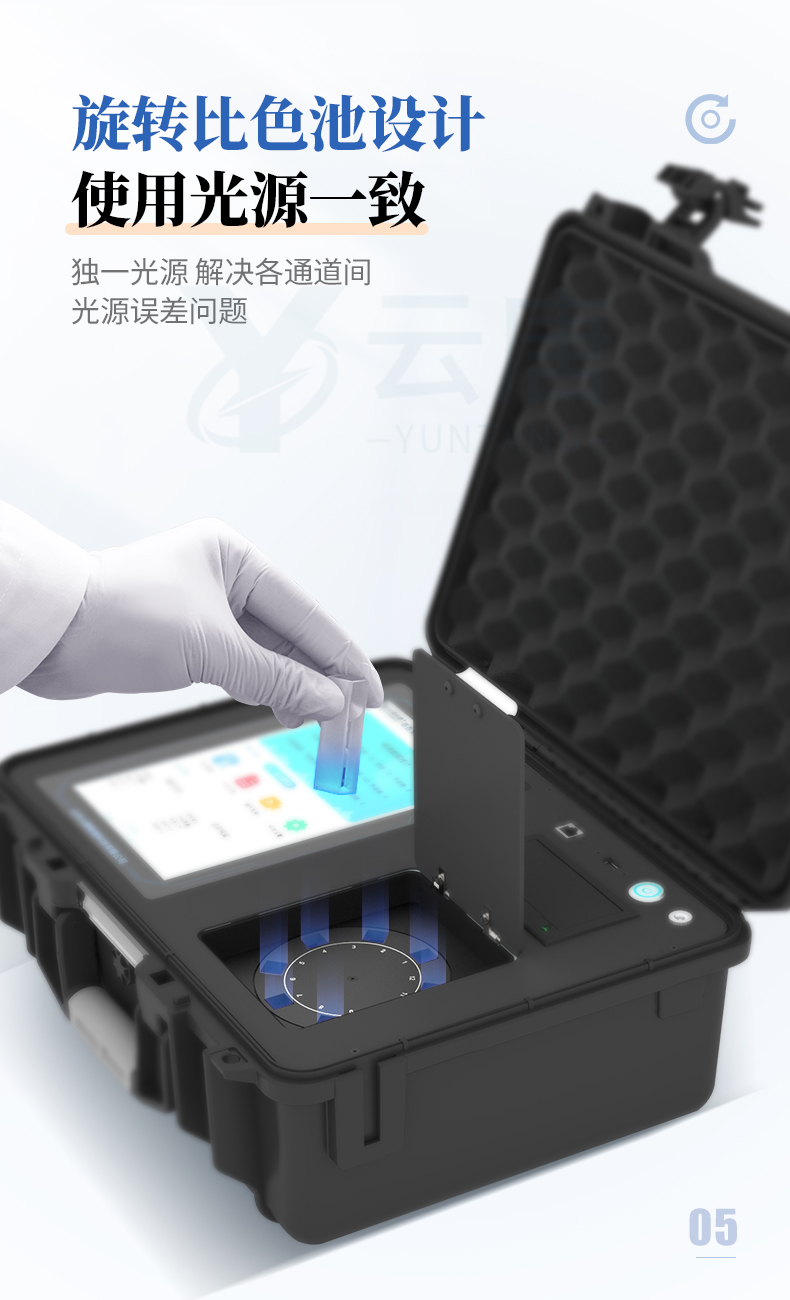 3.一體化便攜式快檢設備,采用交直流兩用供電方式,可連接車載電源,配備6ah大容量充電鋰電池,可以滿足現場及流動檢測使用的需求。儀器尺寸:43×35×20cm, 主機凈重:5.1kg